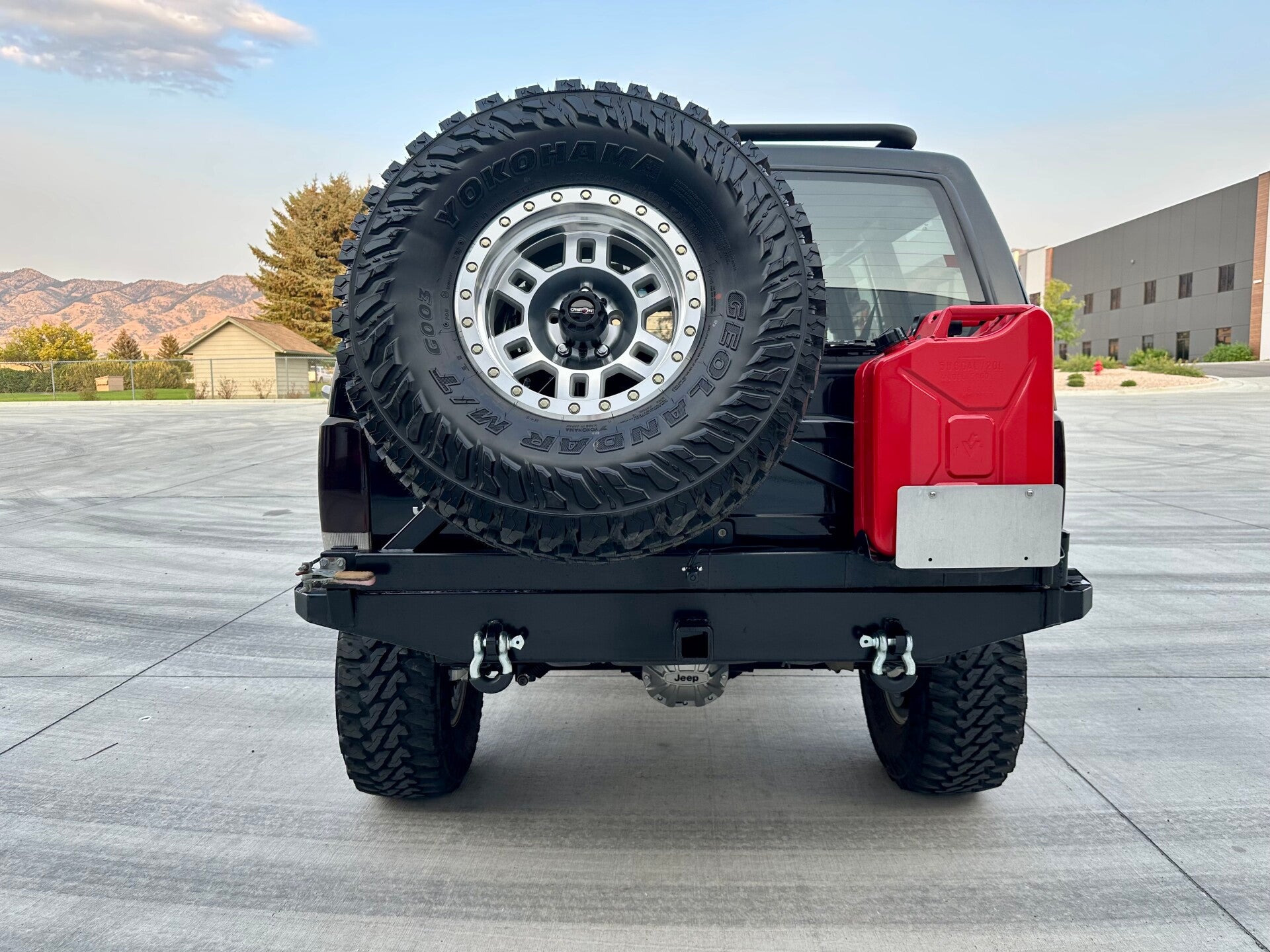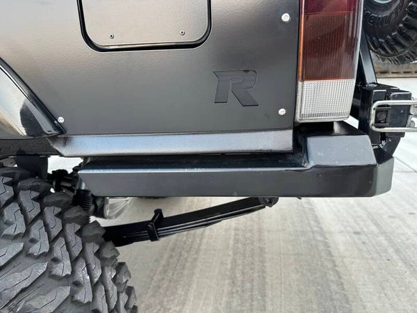 - AJ's Offroad "Tanker" Rear Steel Bumper w/ Integrated Trailer Hitch receiver, Recovery tabs, Quarter Panel Protection