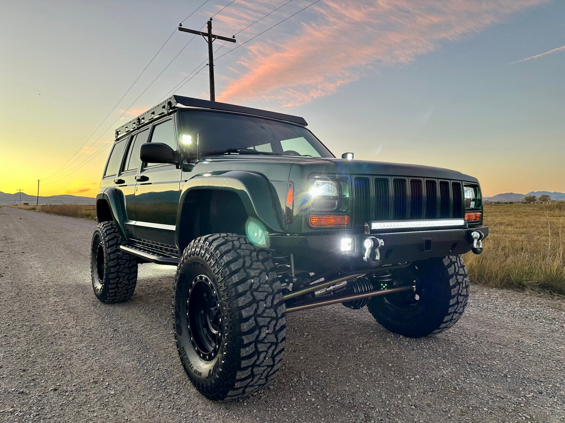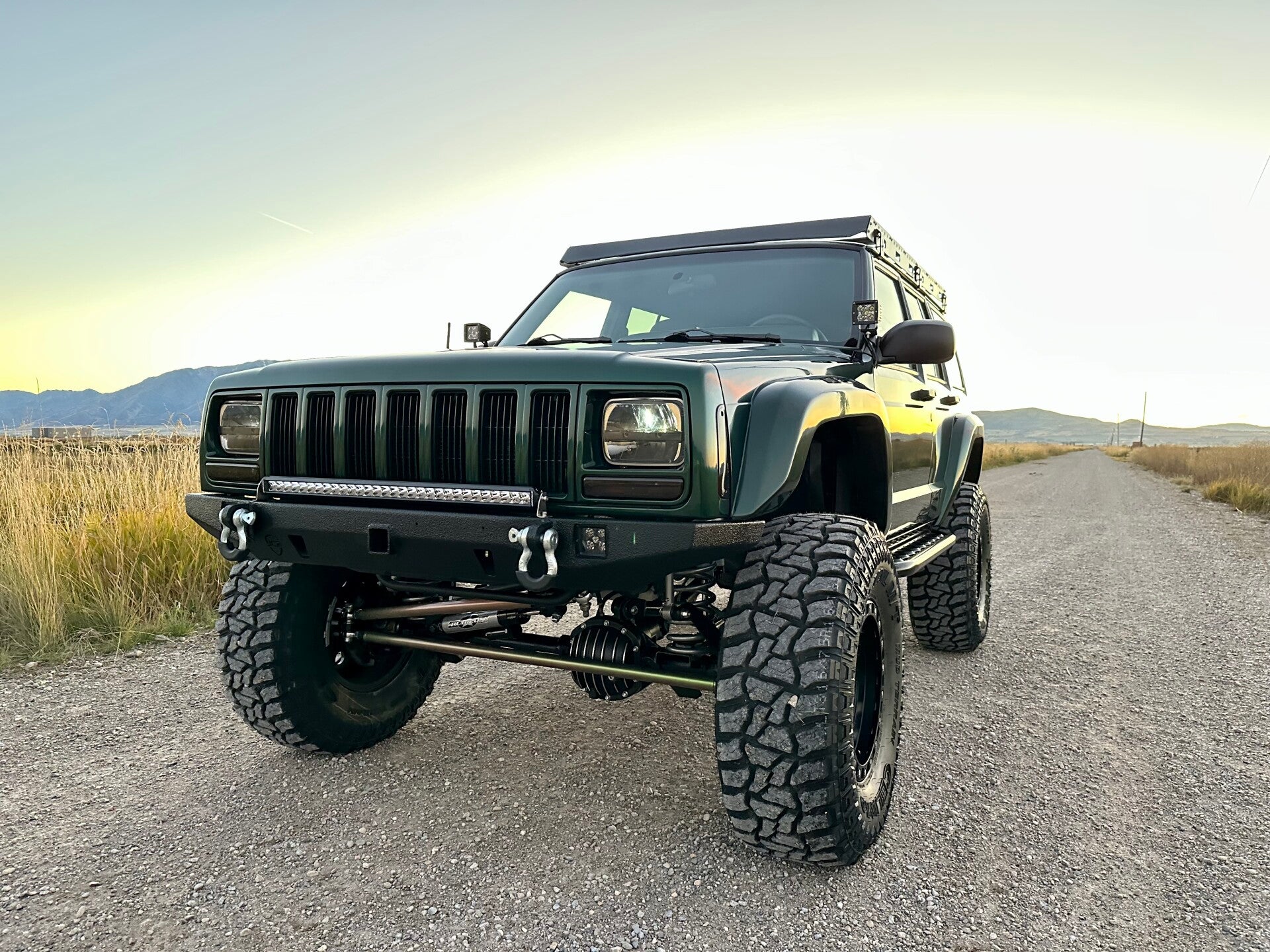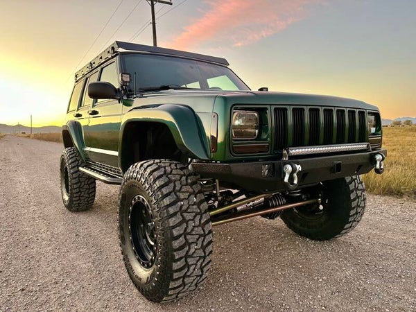 This XJ has been stripped down and pieced back together into the RestoMod you see today. Everything from the interior, axles, suspension, bumpers, etc. was removed, stripped, coated, or replaced and put back together into the beautiful rig you see here. New Crate Motor, rebuilt transfer case, new suspension, new drivetrain accessories and much, much more. The Jeep runs and drives great, shifts smoothly, and the 4x4 system works wonders. All fresh synthetic oil/filter, spark plugs, coolant, transmission fluid, transfer case fluid, brake fluid bled, both differential fluids, etc. All Fluids are new. This Jeep has been built with the best options in the industry, and its ready to tackle any terrain confidently and reliably.